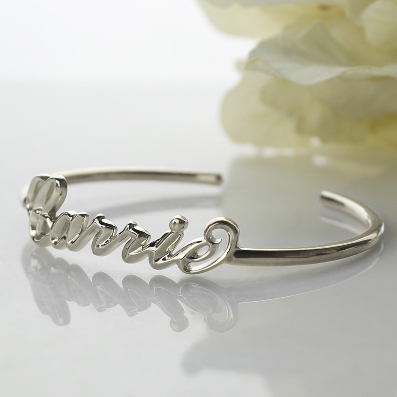 Personligt silvernamnarmband Bangle Armband - Vårt Carrie-stil 3D-armband skiljer sig från vanliga produkter, det har mer lyster och administrativa nivåer. Du kan använda denna effektbeställning och alla ord eller vilket namn du vill.