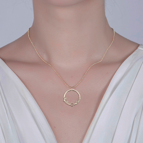 Personliga Circle Lovers Names Necklace med hjärta sterling silver