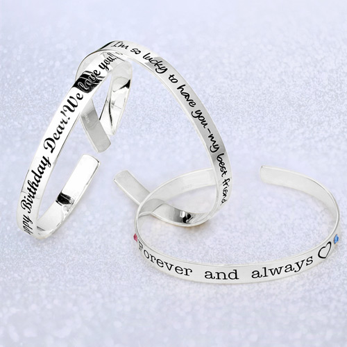 Detta armband är enkelt och elegant och ger en känsla av klass och mening till ditt utseende. De otalade orden som har fått så mycket mening med ditt liv kan sammanfattas med några få ord med dess vackra gravering. Våra armband kommer att göra en fantastisk present!