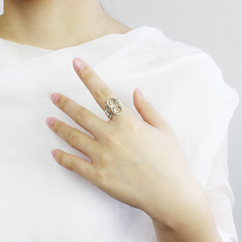 Personliga gåvor Fancy Monogram Ring Sterling Silver - Denna monogramring tillverkad av högkvalitativ 925 sterling silver, detta är ett stycke som kommer att värdesättas under en lång tid framöver. Det är en cool julklapp. Traditionellt är monogram utformade i följande ordning: förnamn initial till vänster, följt av efternamnet initialt i större text i mitten och avslutat med mitt initial till höger. Vänligen skriv dina initialer i den ordning du vill att de ska visas med efternamnet initialt i mitten.