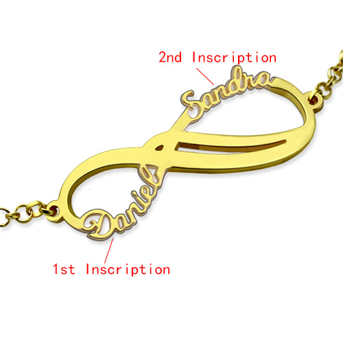 Personligt Infinity 2 Namnarmband Guldpläterat silver