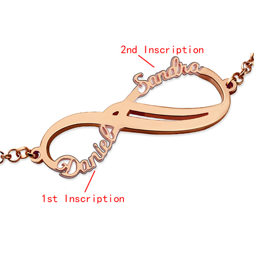 Infinity 2 Namnarmband kommer med en personlig stil och en elegant design. Välj valfritt namn eller ord för dig själv eller de som är kära och lägg till en personlig touch till wristlet. Namnet på armlen är krökta ut i ett charmigt teckensnitt, som visar din utsökta smak i smycken