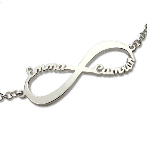 Alla älskar oändlighetssymbolen runt halsen eller handleden, men detta sterling oändlighetsnamnarmband tar saker till nästa nivå. Två namn på oändlighetens sida för en verkligt meningsfull gåva.