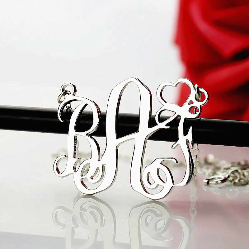 1. Ett monogramhalsband är vanligtvis strukturerat med efternamnet som det stora initialet i mitten, förnamns initial till vänster och mellannamn initial till höger.