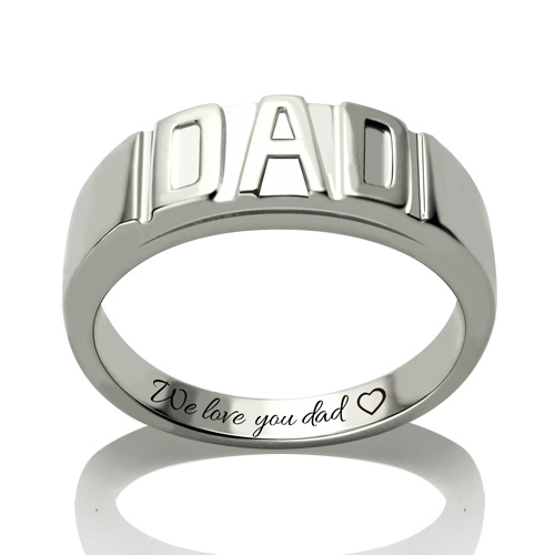 Visa pappa hur speciell han är! Detta band har ordet "DAD" i polerade upphöjda blockbokstäver. Insidan av detta 6,5 mm breda band kan graveras med meddelandet du väljer - upp till 20 tecken i längd. Polerad till en strålande glans, denna ring kommer att vara en ständig påminnelse om hur mycket du älskar honom. Skräddarsydd för att passa hans ringstorlek.