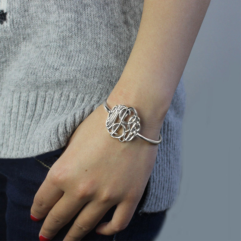 1. Ett monogram är vanligtvis strukturerat med efternamnet som den stora initialen i mitten, den vänstra initialen är förnamnet och den högra initialen är mellannamnet.