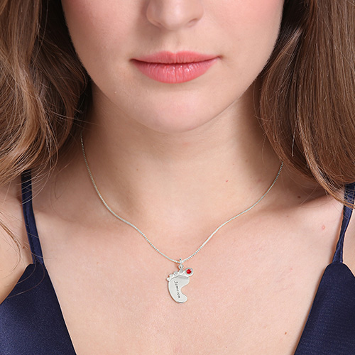 Personaliserade mödrar Baby Feet halsband med födelsesten & namn - Det är en gåva från hjärtat, ditt hjärta som de kommer att hålla nära sitt eget hjärta, varje dag. Och varje gång de lägger på det kommer de att komma ihåg att du tog dig tid att skapa en så meningsfull gåva för att minnas deras nya lilla.