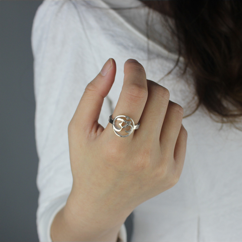 Personliserad Om Yoga Ring Sterling Silver - Våra yogasmyckdesign inspirerar inre skönhet och väcker vår anda. De inspirerande & yogahalsbanden med mening är inspirerade av gamla traditioner och helande krafter. Alla våra yoga / inspirerande halsband med betydelse är designade och monterade i vår fabrik. Vi använder material av fin kvalitet - 925 sterlingsilver, 18 guldpläterade. Halsbanden med mening skapar underbara gåvor för alla tillfällen, inklusive årsdagar, födelsedagar, examen, valentiner, mors dag och andra speciella evenemang.