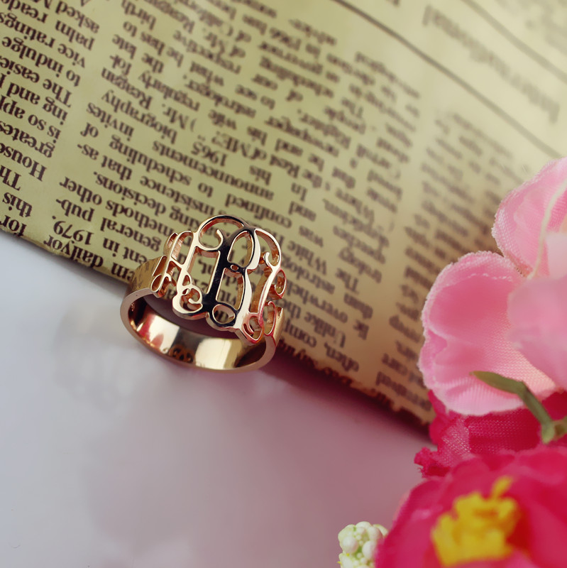 1. Ett monogram är vanligtvis strukturerat med efternamnet som den stora initialen i mitten, den vänstra initialen är förnamnet och den högra initialen är mellannamnet.