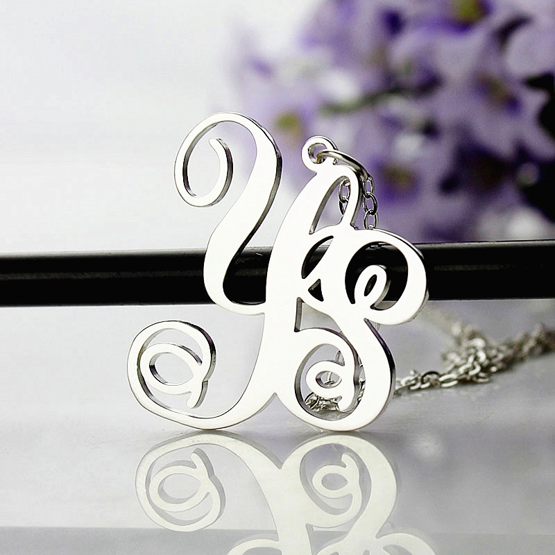Personligt sterling silver 2 ursprungligt monogram halsband