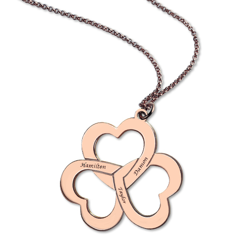 Personlig trippel hjärta namnhalsband rosa guldpläterad