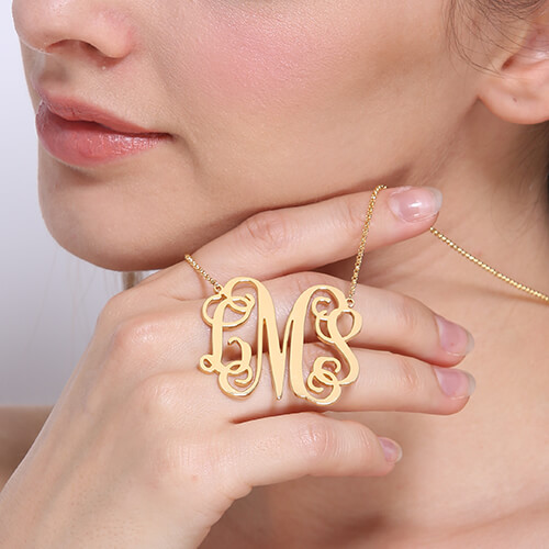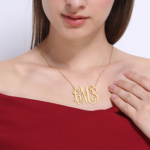 1. Ett monogramhalsband är vanligtvis strukturerat med efternamnet som det stora initialet i mitten, förnamns initial till vänster och mellannamn initial till höger.