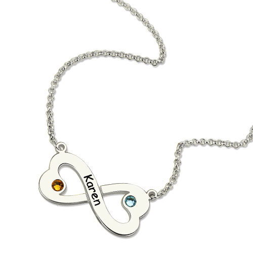 Det finns inget bättre sätt att visa upp din oändliga kärlek till någon annan än detta Heart Infinity-halsband med månadssten s. Varje oändlighetshjärta är prydd med olika färger på kubikzirkonier av ditt val. Du kommer att älska det enkelt sätt ditt namn graverade på oändlighetssymbolen för att skapa ett halsband du kommer att älska för alltid.
