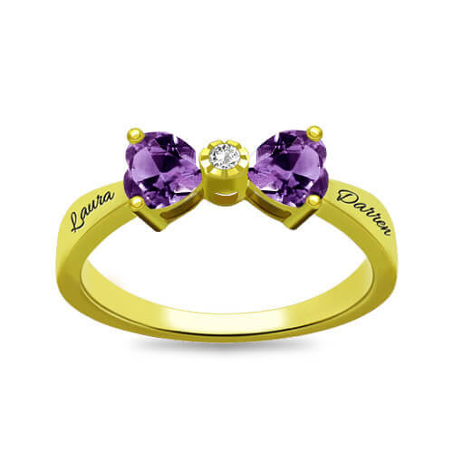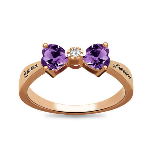 "Februari Ladies måste ha" Custom Heart Birthstone Bow Ring