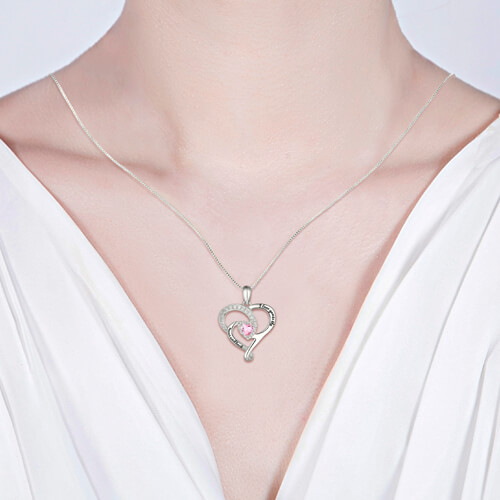 Du kommer att älska detta känsliga sterling silver hjärthalsband - ett uttryck för kärlek. Tvillinghjärtdesignen har en gnistrande hjärtformad födelsesten. 'I Love You to the Moon and Back' är graverade som ett extra speciellt sätt att säga I Love You till någon du bryr dig om. Gör det unikt med ditt val av födelsesten. Det är en perfekt present till alla hjärtans dag och mors dag.