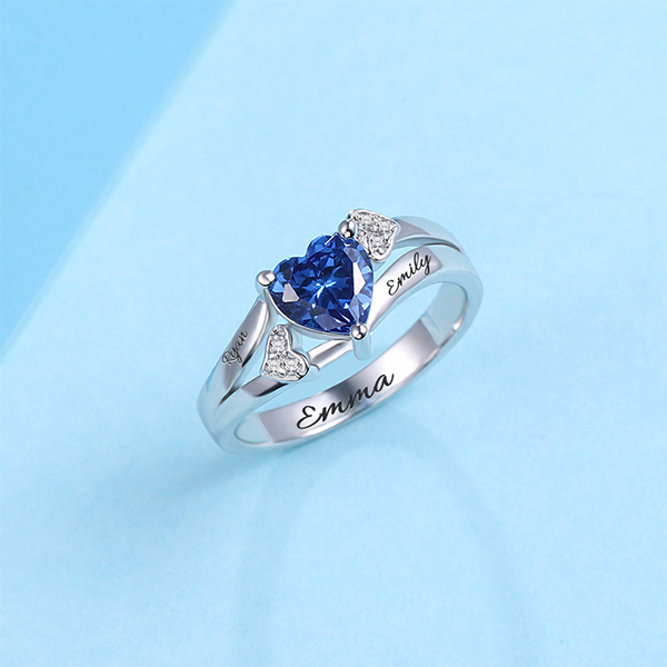 En personlig hjärtmånadssten ring i glänsande silver kulminerar i en mångfacetterad hjärtformad cubic zirconia sten för en fantastisk stil hon kommer att älska. Om du älskar hjärtan, födelsestenar och högkvalitativt sterlingmaterial, kommer du att älska vår unika hjärta födelsestenring! Anpassa denna ring med alla färgade födelsemånaders ädelstenar efter eget val och anpassas med dina graverade namn i den , denna anpassade ring är en en-av-en-typ hyllning till din evigt bond! Fira den eviga naturen av sann kärlek med denna exklusiva romantiska smyckegåva.