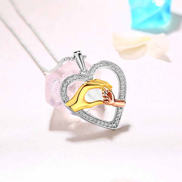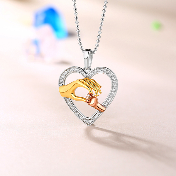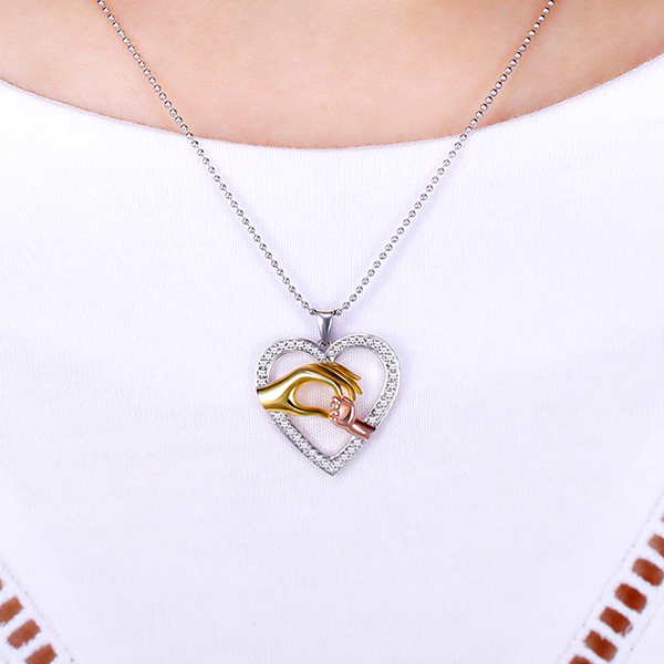 Du och ditt barn delar ett ovärderligt band som verkligen är evigt. Uttryck nu hur mycket du älskar henne eller hin med vårt personliga Holding Hand Heart-halsband. Den unika stilen för hand i hand under hjärtformen cirkeln som representerar mammas omsorg och kärlek till sina barn. Detta halsband firar ditt värdefulla förhållande till mamma och barn, det är den bästa meningsfulla gåvan för mors dag och det är också bekvämt att ha på sig som passar för varje tillfälle. Stark efterfrågan förväntas efter denna meningsfulla hand i hand hjärthänge, så beställ nu!