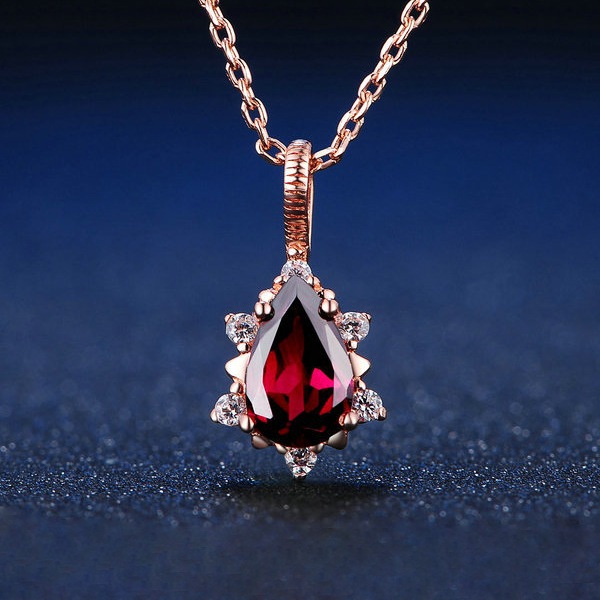 Detta eleganta hänge / halsband i sterlingsilver har en naturlig röd granatpäronformad sten och den röda granaten omges av sex små kubiska zirkoner. Denna fantastiska djupröda sten är belägen i en sterling silver inställning och ser riktigt vacker ut. Var beredd att imponera på den person du älskar med en av de fantastiska artiklarna i bländande rockkollektion. Våra produkter är dekorerade med perfekt klippta stenar och har mönster som passar alla preferenser och budgetar. Detta fantastiska hänge är en juvel som säkert kommer att förvåna dig.