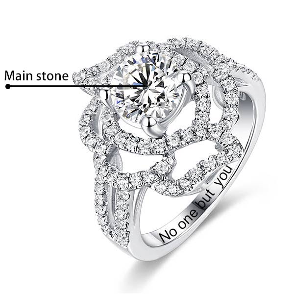 Denna gnistrande ring med ädelsten är en klassisk gåva till din älskade flickvän eller välj en rundskuren naturlig pärla födelsesten för att skapa din helt egen anpassade födelsesten ring! Gravera insidan med initialer, ett namn, ett speciellt datum eller ett meddelande för ett verkligt enstaka smycken för att göra denna underbara ring extra personlig. Detta är en unik modering i rosform, vacker och elegant, som kan användas för att matcha den med klänning eller fest eller som present till en vän. Detta är lämpligt för present, förlovning, bröllop eller dekorationer och kommer säkert att göra ett oförglömligt minne.