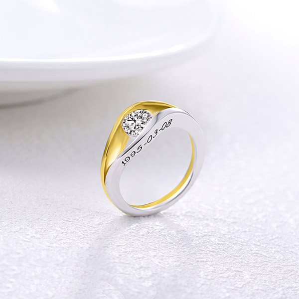 Upplev en anmärkningsvärd display av färg och ljus i en fantastisk sammansättning av smycken sofistikerade och en unikt vacker stenring. Formen på ängelns öga, med en delikat födelsedagsten, är mer iögonfallande. Den anpassade inskriptionen på ringarnas silver- och gula sidor ger personliga funktioner och ökar känslan av exklusivitet. Det är en perfekt graverad gåva för att fira en årsdag, mors dag och många andra speciella tillfällen.