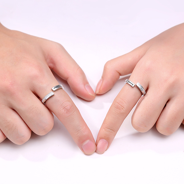 Ett par par ringar, graverade med varandras namn, representerar en slags miss och företag. W höna de två personer tillsammans två ringar som blir en oändlig form, inte bara är det en typ av kärlek åtgärder, men också representerar två personer kan alltid vara tillsammans, integration tillsammans. Den typen av innovation som kommer att förbättra dig ha intimitet och känslor mellan dig och din älskare. Dessa par-ringar med Infinity Design Combination representerar också kärlekens integritet och evighet. Det är den bästa gåvan att visa för alltid kärlek.