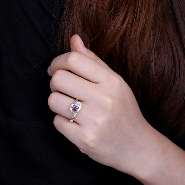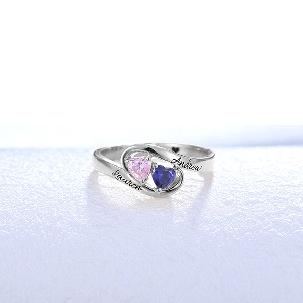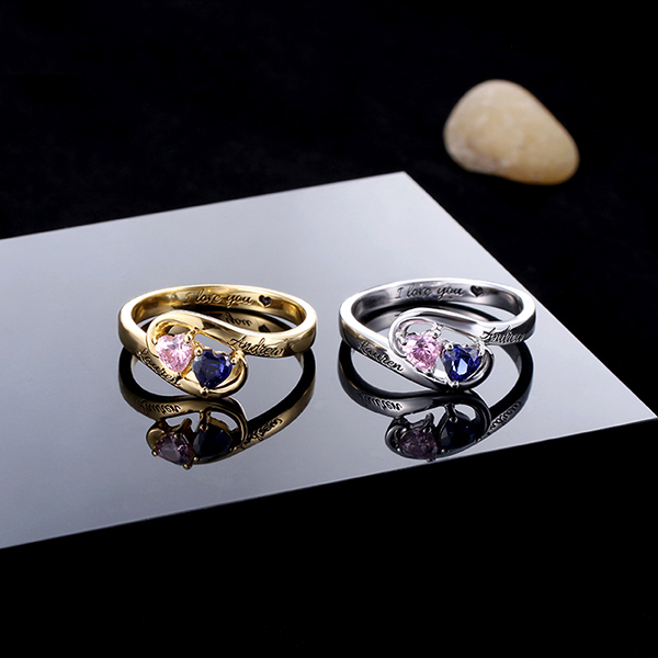 Visa henne sanna kärlek och gör detta till den perfekta mors, årsdagen eller löfte ring anteckningsgåvan. De övre och nedre skaften vaggar stenarna för att representera skyddet, tryggheten och säkerheten för din kärlek. Du kan göra denna ring personlig med ditt val av 2 födelsestenar, 2 namn och en inre gravering. Observera att namnen måste vara minst 8 tecken och den inre ringstickningen måste vara 20 tecken eller mindre. Denna ring är verkligen en mångsidig och vacker present till alla tillfällen.