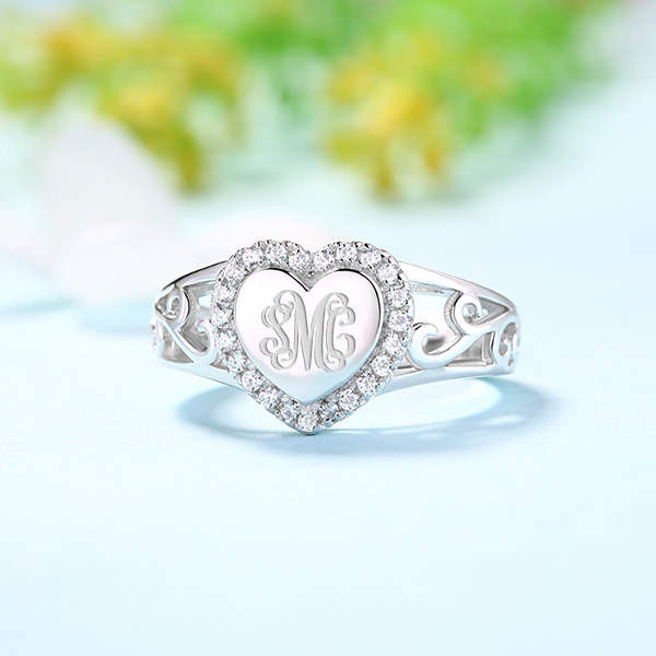 Anpassad CZ Monogram Heart Ring