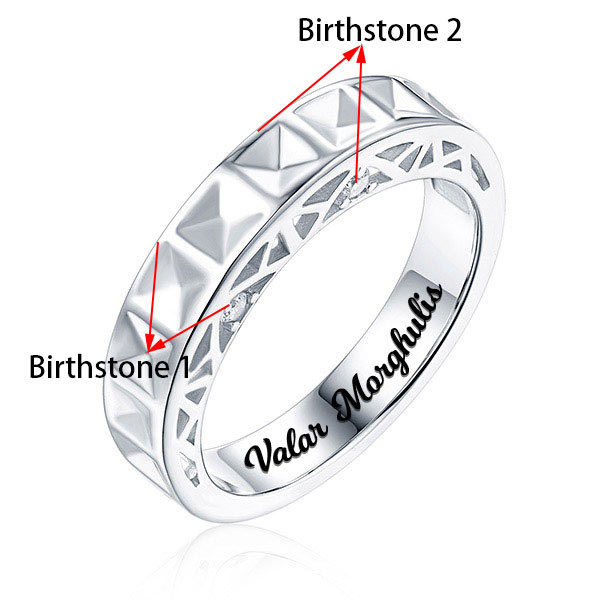 Ingenting är lika sött som när kärleken samlar två personer! Denna lockande ring gör att ringarna och arkitektoniska stilar smälter samman! Utställning av en unik design av Valentine's Bridge-bandet med solid randformning. Denna ring är i sterlingsilver och vackert pläterad platina. Du kan göra denna ring personlig med ditt val av två födelsestenar, två födelsestenar representerar två personer. Perfekt för gåva, förväntas stark efterfrågan, så försena inte. Beställ nu!