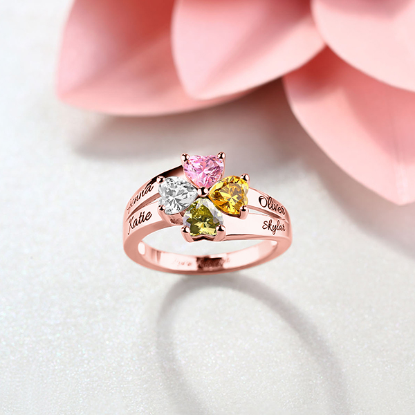 Dela din kärlek till familjen med denna vackra fyra steners moderring. En utsökt uttalande ring som hon älskar att bära, den här har fyra glittrande födelsestenar, tillsammans med motsvarande namn. Det är den perfekta gåvan att ge en mamma eller en mormor för att låta henne veta hur viktig hon är och hur mycket hon är älskad. En mamma är personen som håller familjen tillsammans, visa upp det med födelsestenringar!