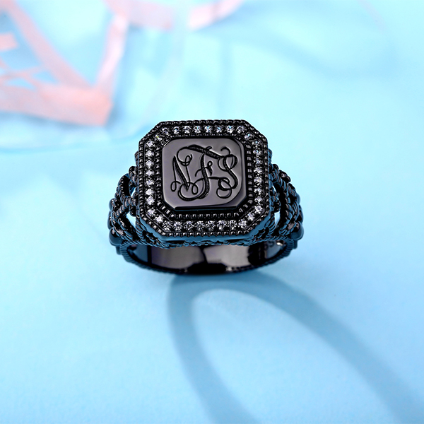 Vår klassiska Square Monogram CZ Vine Ring är vacker och kan pryda alla fingrar på din hand. Det är en speciell design som aldrig kommer att gå ur stil. Det är den perfekta monogramringen för män eller för kvinnor! Du kan få upp till tre initialer graverade på denna monogramram. Monogramsmycken är alltid en fantastisk gåva att ge, så varför inte ge denna vackra personliga ring?
