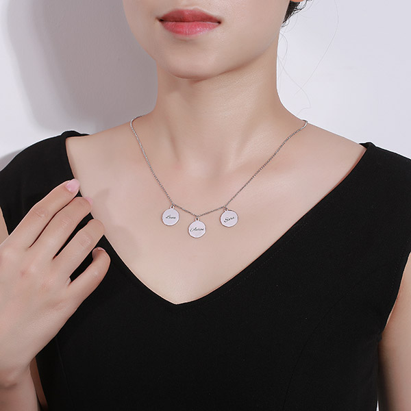 Gör det till en speciell dag varje dag för den som får detta fantastiska personliga halsband med trippelmynt. Den perfekta presenten när som helst på året! Välj det namn du valt att graveras på upp till 3 mynt på detta sterling silver halsband. Detta speciella skivhalsband kommer med en rolo kedja i sterling silver. Detta mynthalsband är perfekt för alla tillfällen - klä det eller upp! Enkelt och elegant!