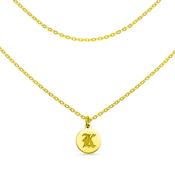 Anpassa detta känsliga skivhalsband med dina initialer i gotiska bokstäver graverade det. Du kan bära det på två sätt (ett långt halsband eller en kort choker). De utsmyckade gamla engelska bokstäverna speglar halsbandens gamla världs charm och ger dig en mörk, retro, mystisk känsla. Bär du detta riktiga guld choker halsband, kan du vara lika underbara som Kim Kardashian. En fantastisk gåva till dina nära och kära i alla speciella tillfällen som jul, födelsedag, mors dag och alla hjärtans dag.