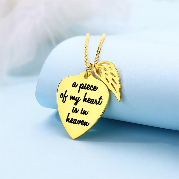Personligt Memorial Heart Necklace med Angel wing Sterling Silver i guld