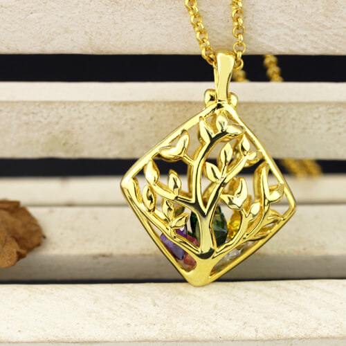 Rhombus Cage Family Tree Birthstone Necklace Guldpläterad