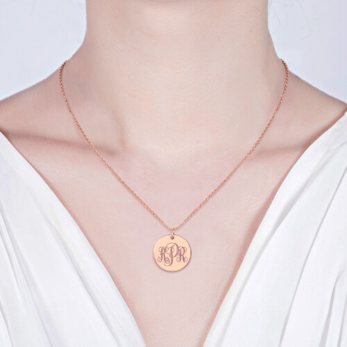 Anpassa detta smarta Disc Monogram halsband med dina initialer graverade på det. De utsmyckade vintageinspirerade typsnitten speglar skivhalsbandets gamla charm. En enkel men ändå underbar bit, det är ett måste för alla kvinnor. När det finns ett speciellt tillfälle runt hörnet, är det ett bra köp att delas eller gåva.