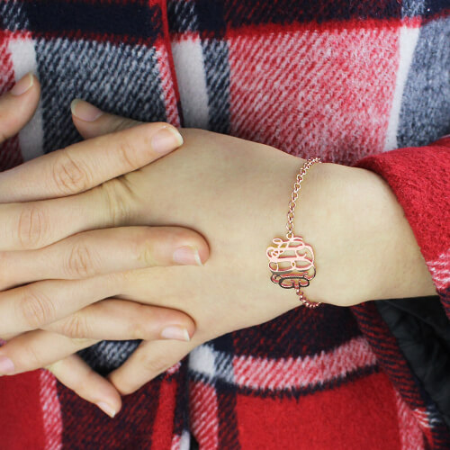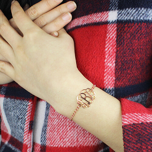 Ta fram din ursprungliga sida med vårt roliga och funky nya rosa guld monogram armband   med dubbel kedja. Vi förvandlade originalmonogramdesign till ett vackert armband med dubbla kedjor! Om du är en fan av monogramtrenden (och vem inte), är våra silvermonograms guldarmband för honom helt för dig! Gåva till en kär med sina initialer.