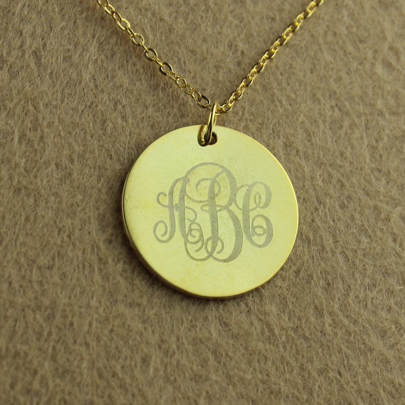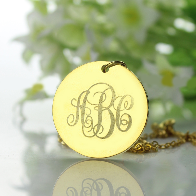 Solid Gold Vine Font Disc Engraved Monogram Necklace