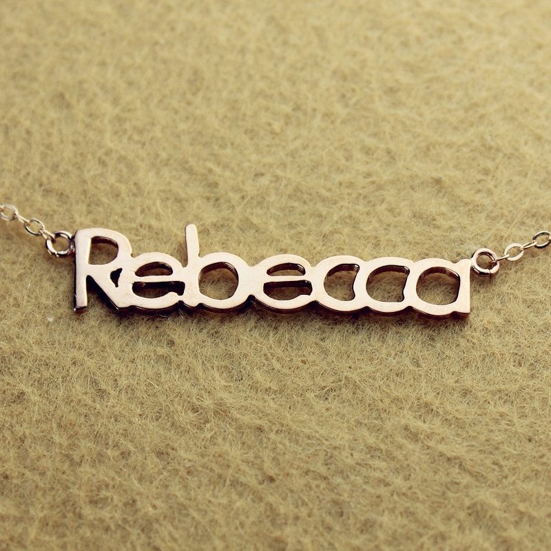 Vi kan skapa valfritt namn med Rebecca-stilhalsband för dig. Det är fantastiskt att göra ett massivt rosaguld halsband med ditt namn !!