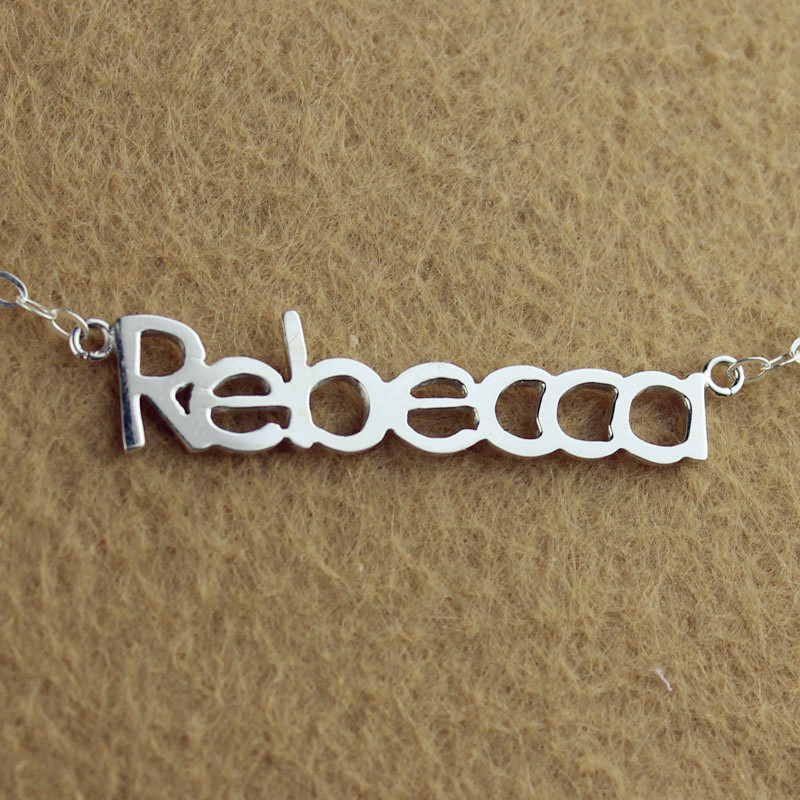 Vi kan skapa valfritt namn med Rebecca-stilhalsband för dig. Det är fantastiskt att göra ett massivt vittguld halsband med ditt namn !!