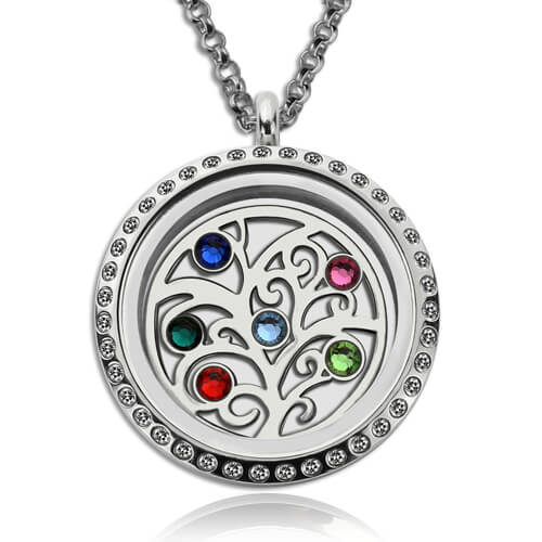 Varje mamma kommer säkert att älska livets charm i rostfritt stål, som är en stark symbol för familjens rötter och tillväxt. Det här speciella locket- halsbandet innehåller inte bara ett familjeträd utan även alternativet att inkludera upp till sex födelsestenar inuti. T han medaljong med månadssten s är den bästa presenten till varje mamma och du kan w atch det verkligen gnistrar på halsen.