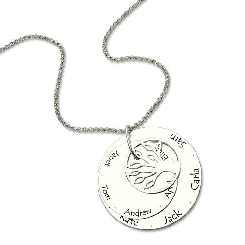 Detta personliga släktträd med två skivhalsband representerar familj och en mammas kärlek. Namn eller datum för hela familjen kommer att graveras noggrant på varje Disc.This tree of life-halsband är också en fantastisk gåva för mormor som vill hålla barnbarnen nära sitt hjärta.