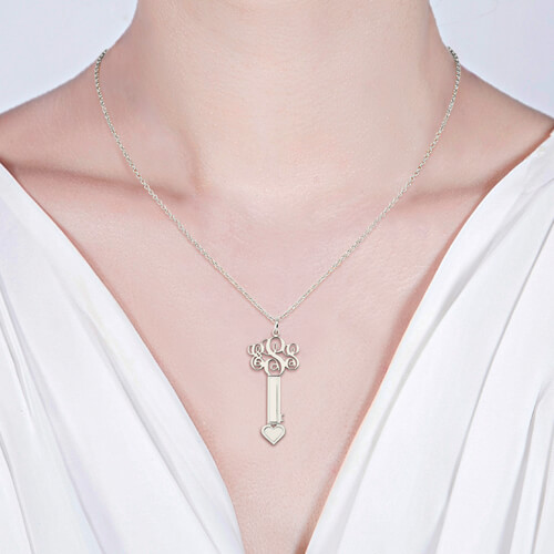 Anpassa ett hjärtformat nyckelband i silvermonogram med de initialer du väljer. Detta halsband är den perfekta gåvan för en kär som påminner dem om din kärlek och omtänksamhet. Skicka initialerna du väljer för att göra en beställning.
