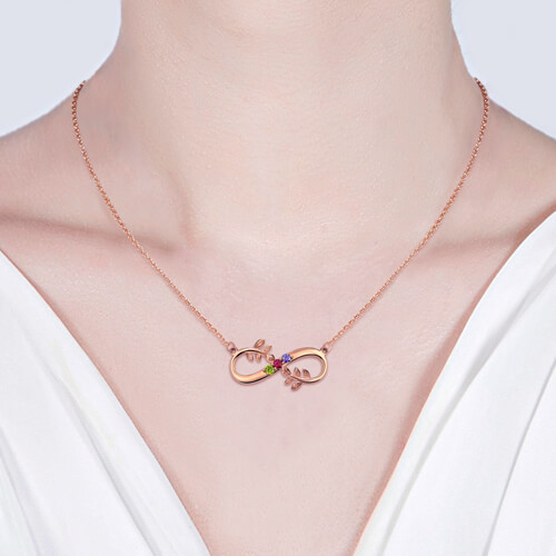 Trädfilial Infinity halsband med födelse stenar i rosaguld