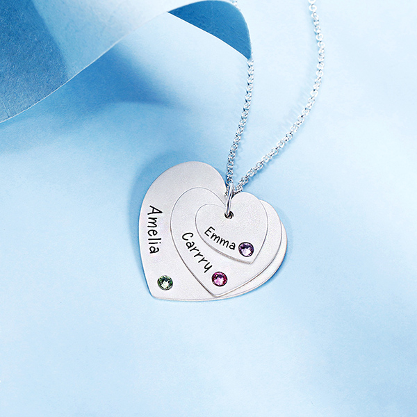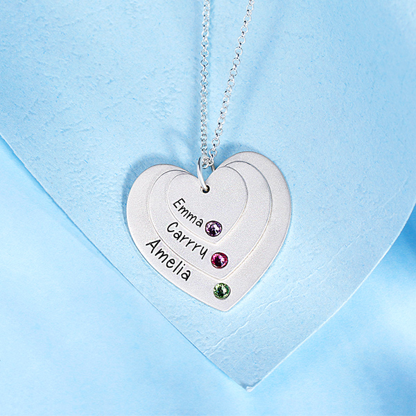Visa att din kärlek lever idag, imorgon och för evigt med detta graverbara tre hjärthalsband. Tygstenar lägger lite färg och personlighet till detta underbara trippelhjärthalsband. För att skapa ett meningsfullt halsband har var och en av specialnamnen eller orden representerar en annan person som du älskar.