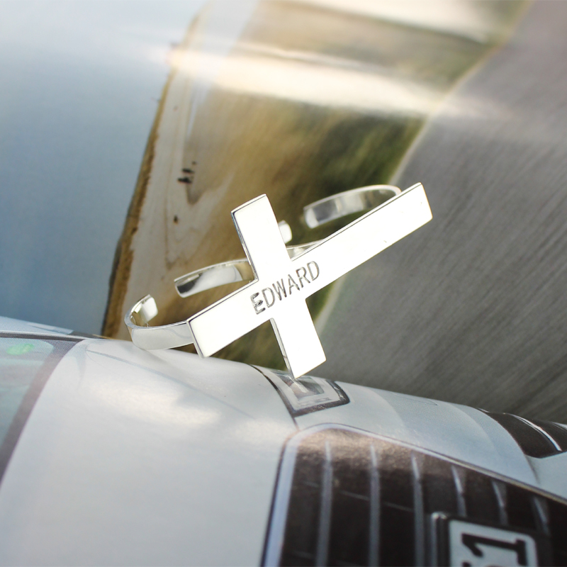 Tvåfinger korsring graverat anpassat namn sterling silver
