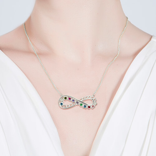 Unik infinity hjärthalsband med födelse stenar platinerad