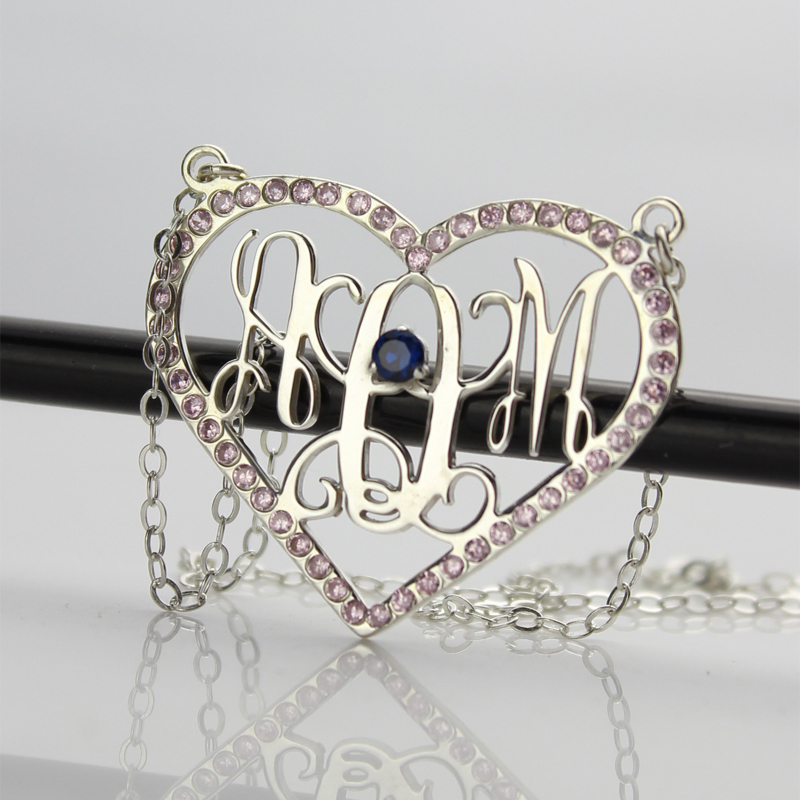 Heart Birth Birthstone Valentine's Monogram Necklace Presents for Her