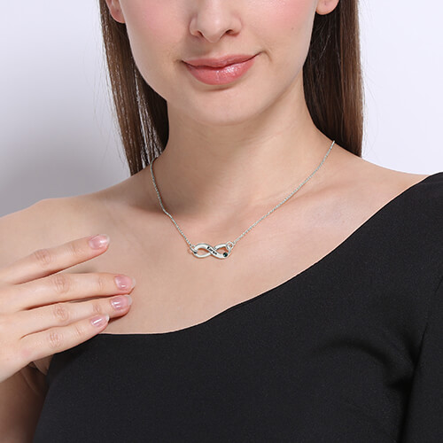 Hedra din oändliga kärlek med detta snygga halsband. Formad i elegant sterlingsilver, denna oändliga symbolformade design kommer att graveras över mitten med ditt namn och födelsesten.