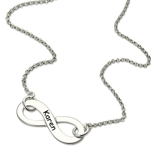 Gravera ditt namn, namnet på någon nära dig som du håller i ditt hjärta för alltid, eller ett ord du försöker leva efter för evigt och alltid på detta speciella oändliga halsband!
