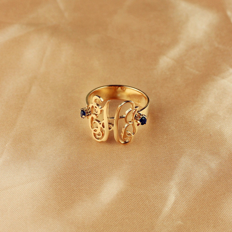 Monogramsmycken är en av de hetaste trenderna som pågår i kändismode idag, och nu kan du gå med i den här vackra kvinnan i guldmonogramring.   Lägg till ett speciellt smycke till din samling genom att ta tag i vår monogramring. Anpassa det med dina initialer och få folk att prata om det. Varje bit är unikt utformad för att fira kvinnlighet. Få dina kärleksbilder att se fantastiska ut med de handritade teckensnitten som pryder ringen.